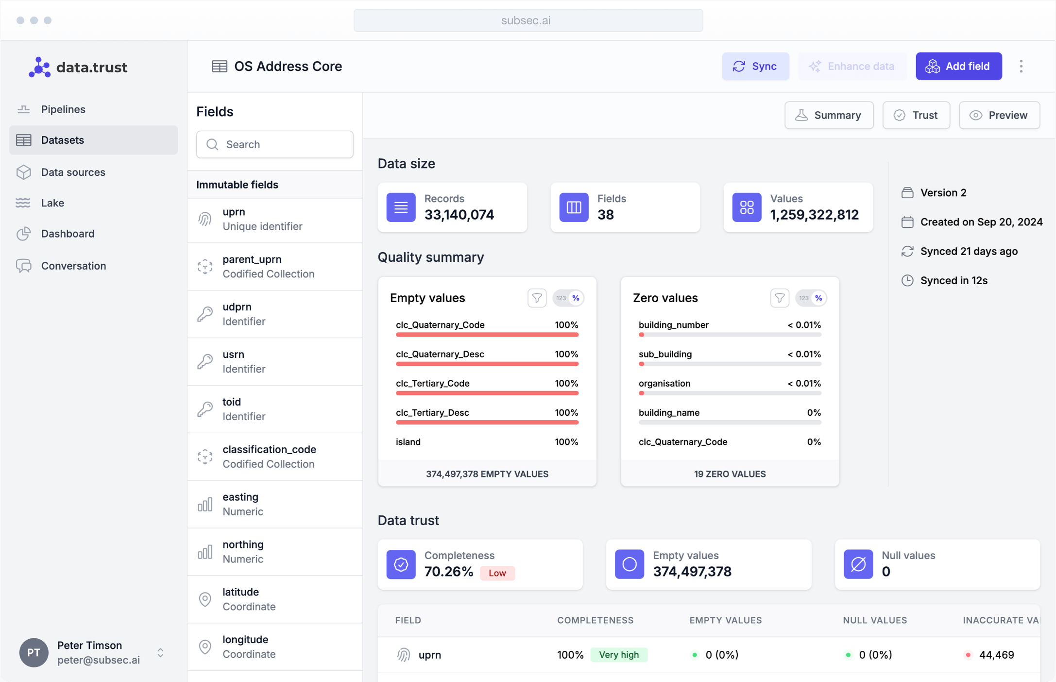 Let's talk about your data. Reach out to see how Subsec can help you prepare your data for AI and get instant, trustworthy insights.